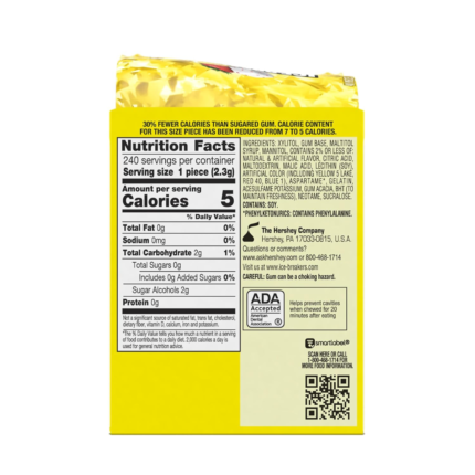 made of: sorbitol, natural and artificial flavors, magnesium stearate, colors (titanium dioxide, blue1 lake, blue 2. blue 2 laxe).