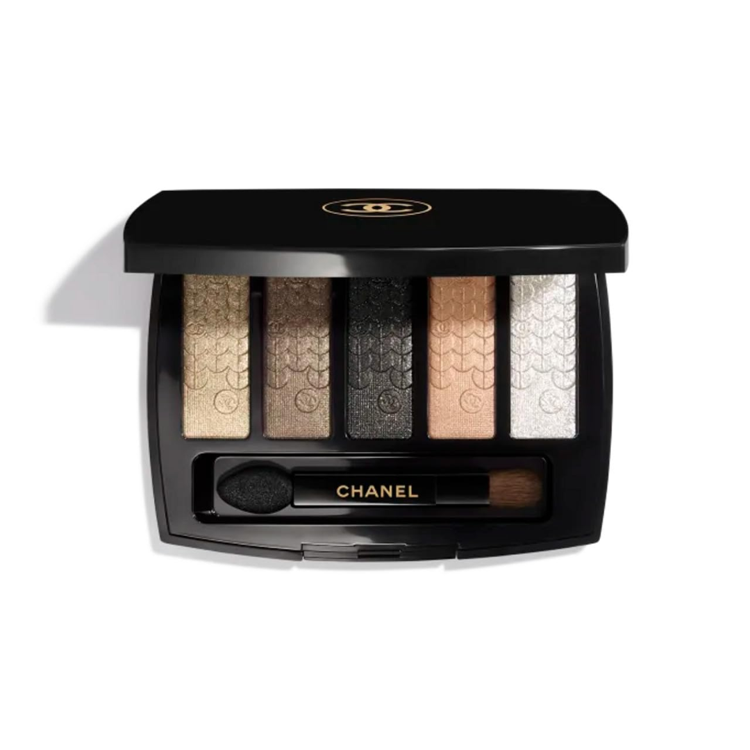 A limited-edition eyeshadow palette inspired by the opulence and magic of the Roaring Twenties. The 5 contrasting, light-catching shades—from platinum beige and bronze to shimmering black, pink beige and diamond white—offer a vibrant tribute to Gabrielle Chanel’s spectacular dresses and highlight eyes for a bewitching makeup look. Developed exclusively for the Holiday 2023 Collection and embossed with a sequin motif.