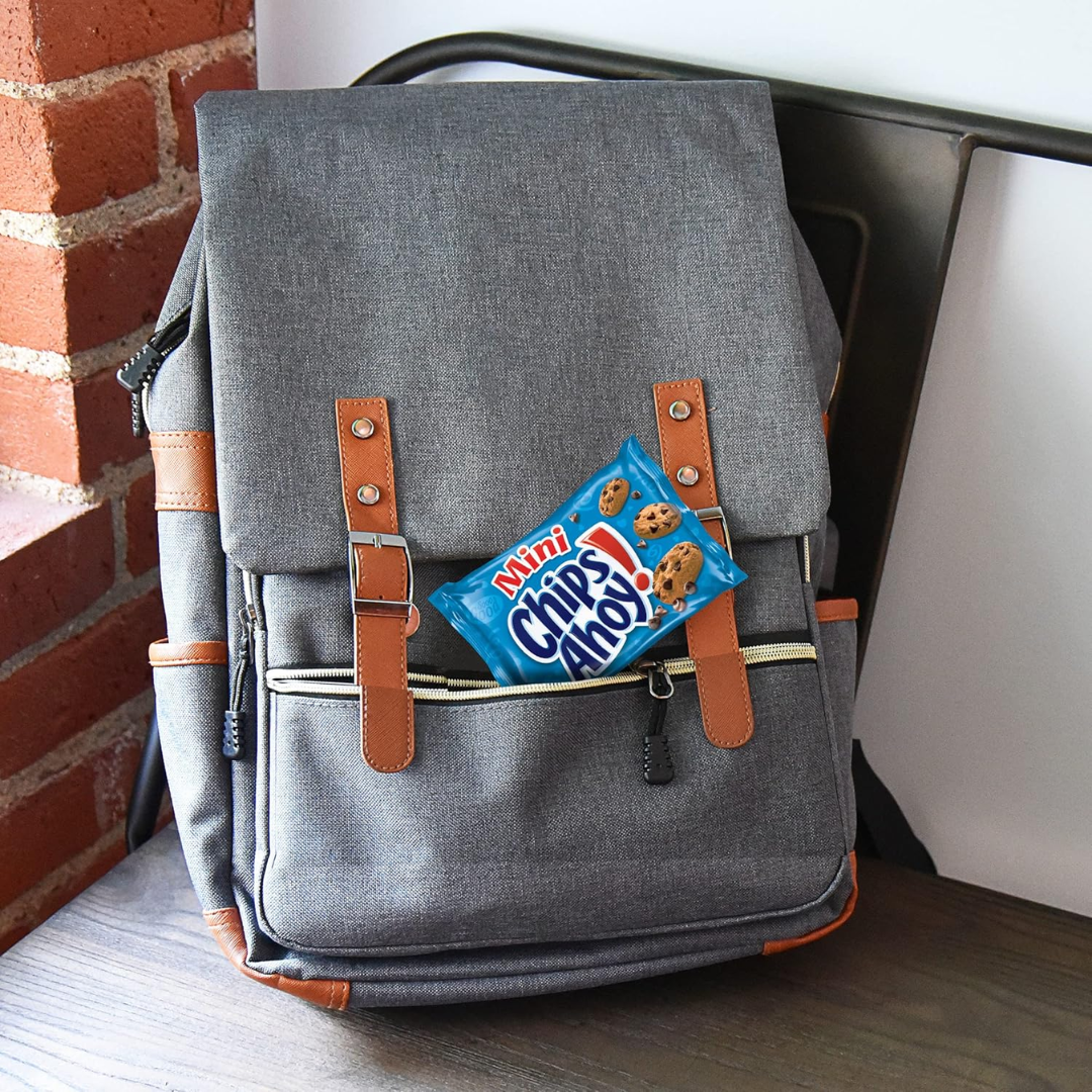 • Twelve 1 oz snack packs of CHIPS AHOY! Mini Chocolate Chip Cookies (packaging may vary)
