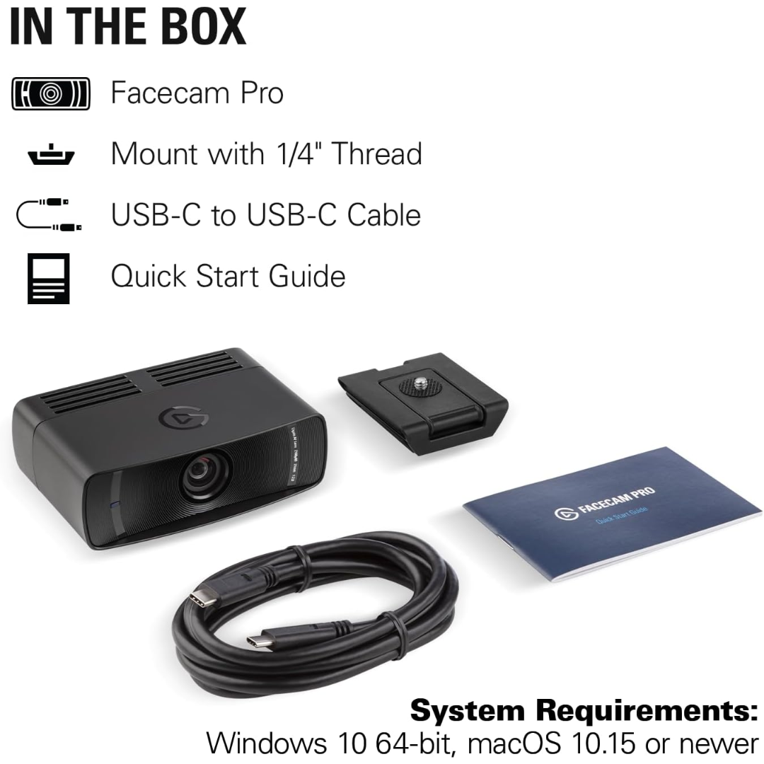 Elgato Facecam Pro, True 4K60 Ultra HD Webcam for Live Streaming, Gaming, Video Calls, Sony Sensor, Advanced Light Correction, DSLR Style Control, Wide Angle, works with OBS, Teams, Zoom, PC/Mac