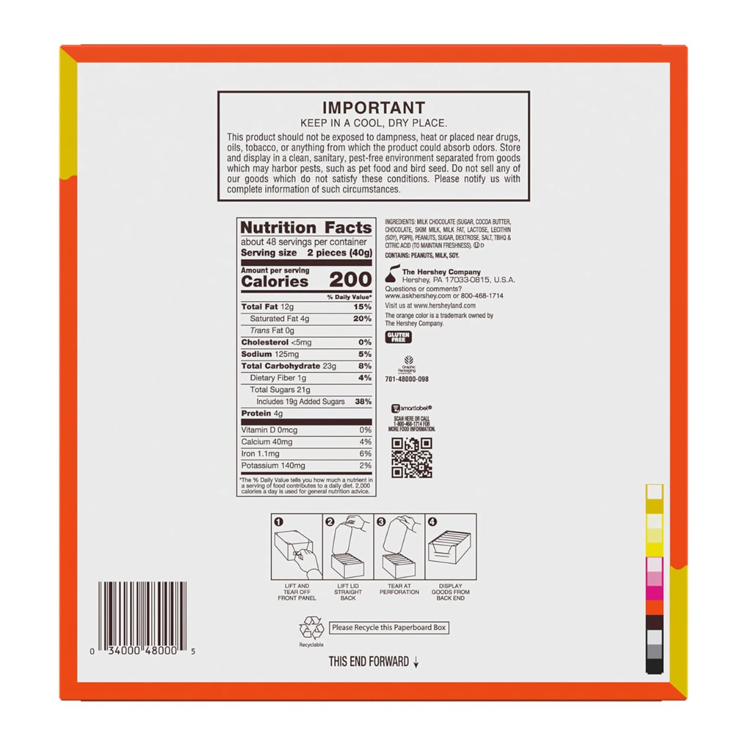 Name a more iconic duo. Everyone will wait… You can’t beat this old fashioned, match made in heaven when it comes to creamy milk chocolate combined with delicious peanut butter. Get ready to taste perfection! REESE’S milk chocolate peanut butter cups are ready to be your go-to snack. Bring this bulk box along to the next sporting event as a concession treat, as movie marathon snacks or game night prizes. Store them in your pantry for an anytime snack or slip a pack into lunch boxes and purses for a midday surprise.