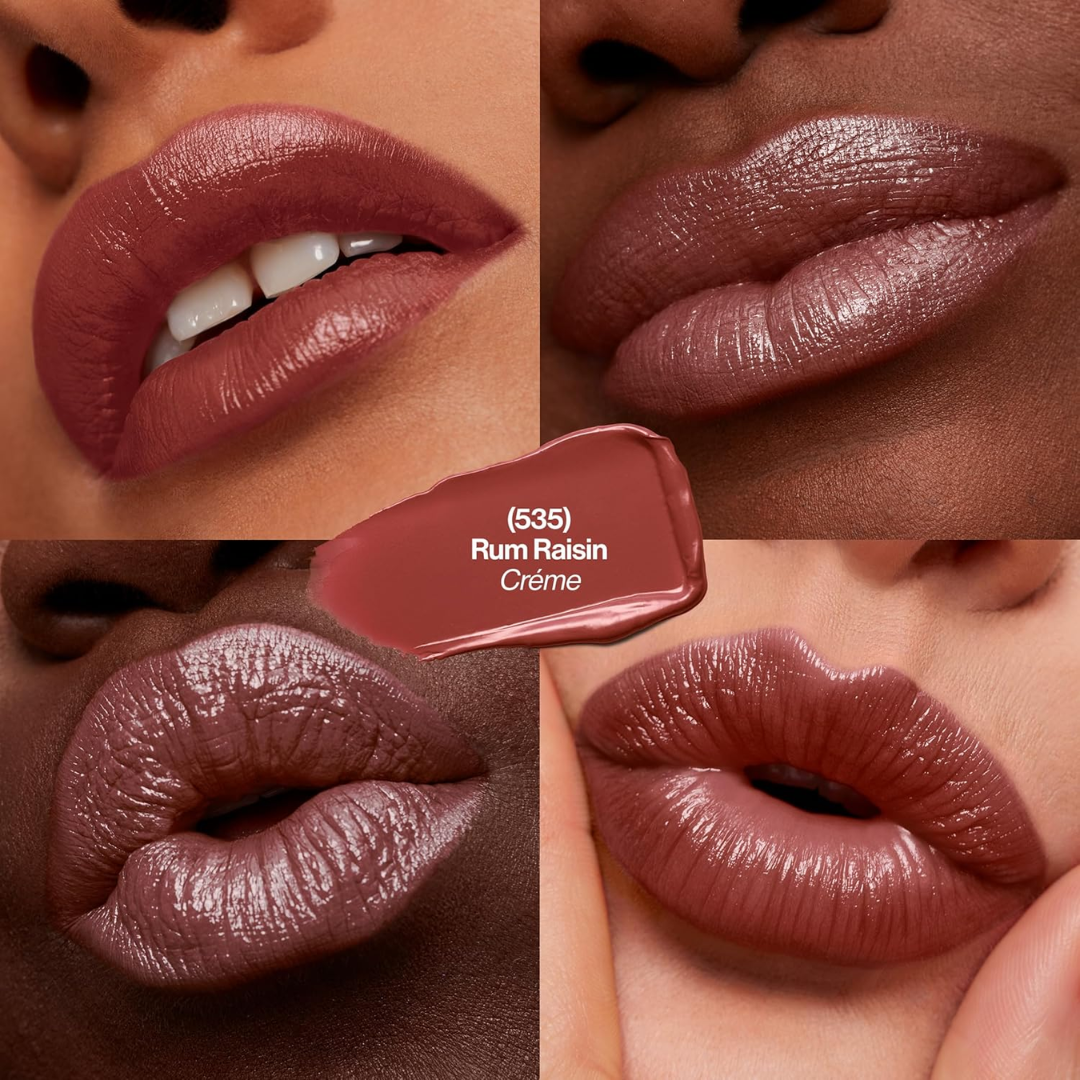 REVLON Super Lustrous Lipstick Gift Set, 5-Piece, Creamy Formula, Moisturized Feel, 755 Bare It All, 477 Black Cherry, 535 Rum Raisin, 805 Candied Rose, 810 Uncut Ruby