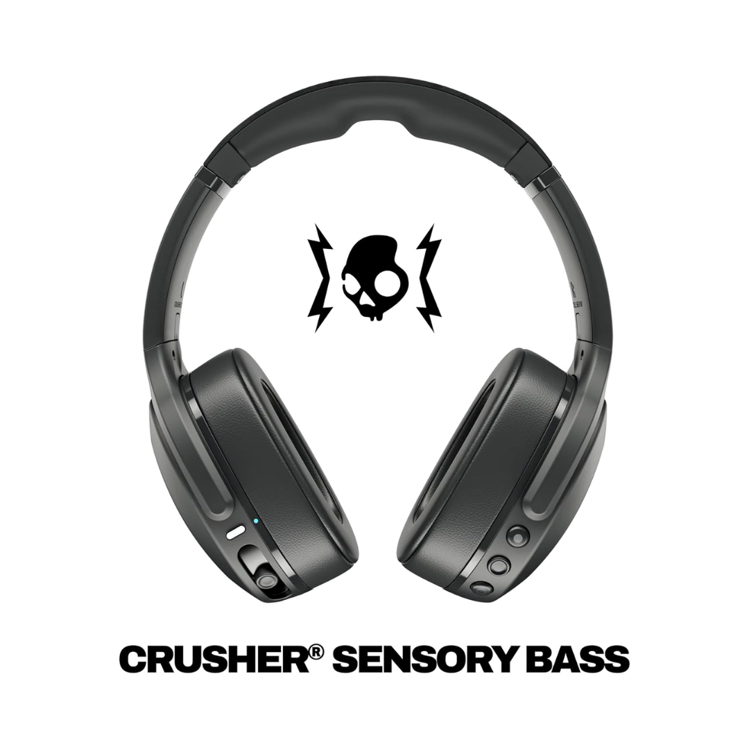 Skullcandy Crusher Evo Wireless Bluetooth Headphones with Extra USB-C Charging Cable, Multi-Sensory Bass, Noise Isolating Over-Ear Fit, 40 Hours Battery, Microphone for iPhone Android – True Black