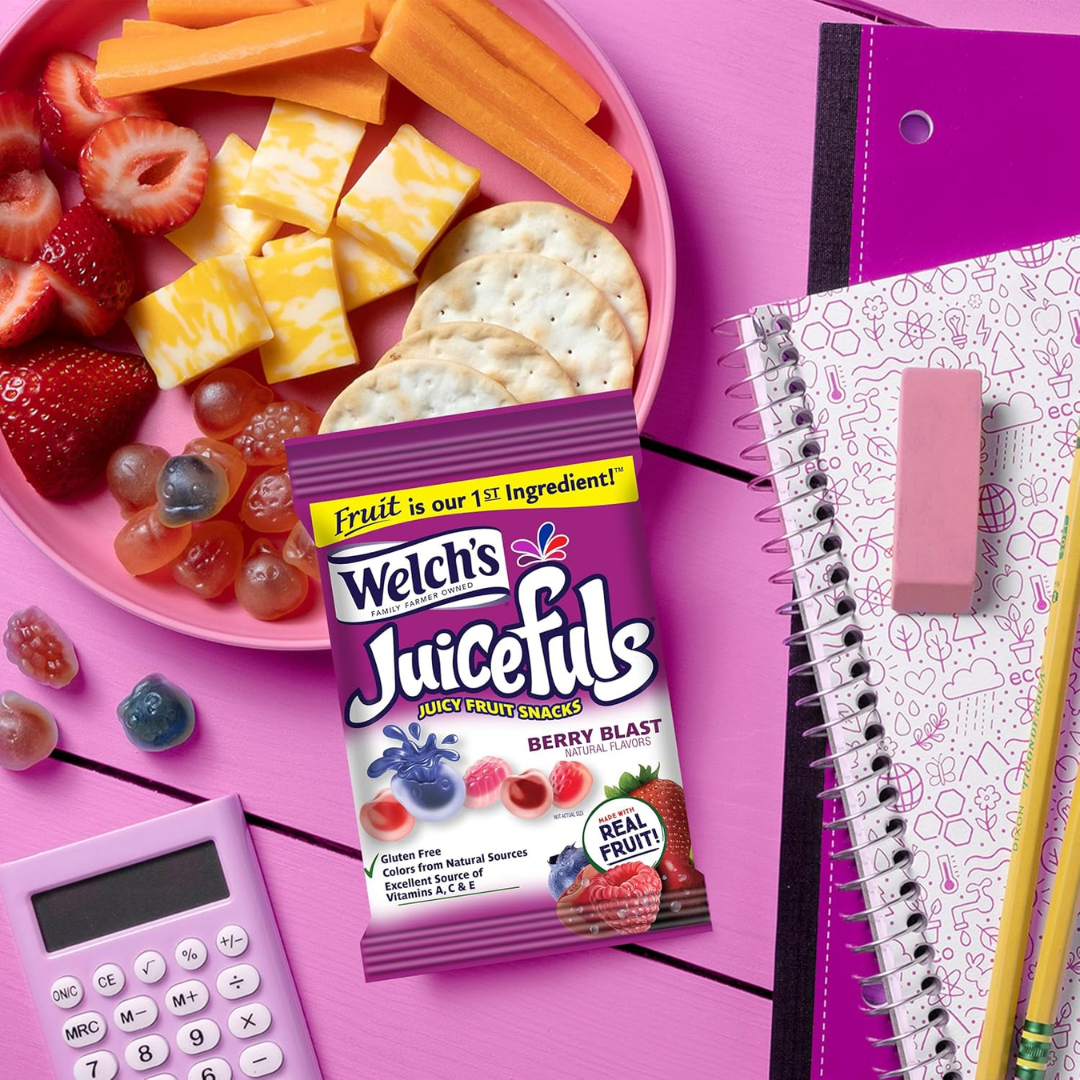 Welch’s Juicefuls Juicy Fruit Snacks, Berry Blast, Fruit Gushers, Gluten Free, 4 oz Sharing Size Bags (Pack of 3)